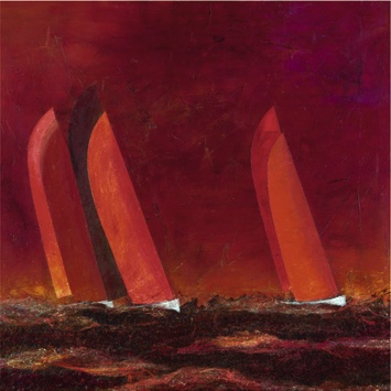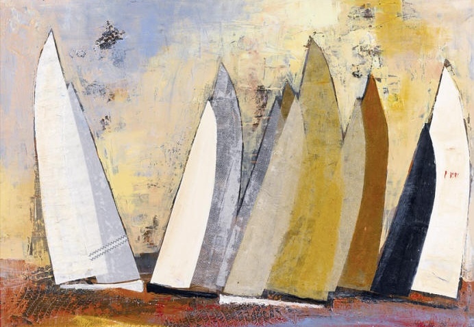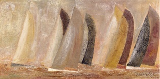 Wind, Wasser, Wellen, Segel, das sind die bestimmenden Sujets in der Malerei der Heinke Böhnert. Die 1961 in Hamburg geborene Malerin hatte in den letzten Jahren dem Genre der Marinemalerei völlig neue Aspekte abgewinnen können. In einer reduzierten Formgebung, die durch intensive Farbwirkung und einen dichten Farbauftrag bestimmt ist, entstehen großformatige Impressionen an der Grenze zur abstrakten Auflösung, die dem klaren und kraftvollen Naturell der Künstlerin entsprechen. Richtungsweisend und damit eindeutig wegführend von den bürgerlichen Auffassungen einer von Tradition bestimmten realistischen Meeres-, Segel- und Regattamalerei entwickelt sich in ihren Leinwandarbeiten eine frische Dynamik, die den Blick auf das Wesentliche reduziert. In der Wechselwirkung zwischen einem pastosen Acrylfarbauftrag und prägnanten Mischtechniken, zwischen Spachtelmasse, Papieren und Segeltuch wird so die Poesie der See, aber auch die Naturkraft von Wasser und Wind vielfältig und auf höchst anschauliche Weise eingefangen. Die seit ihrer frühesten Jugend segelnde und malende Heinke Böhnert hat wie kein anderer Künstler dieses klassische Sujet in einen in Bildauffassung und Komposition zeitgemäßen Kontext gesetzt, der sie aus dem Genre herausragend läßt und Brücken zur Abstraktion der Moderne schlägt.