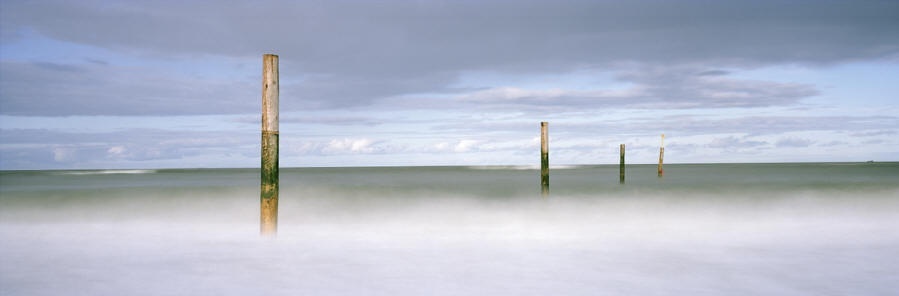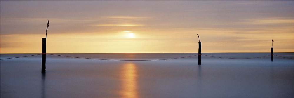 Die einzigartige Panoramafotografie von Deff Westerkamp zeigt die Nordsee von ihrer rauen, zuweilen aber auch stillen Seite. Unendliche Horizonte, Jahrhundertsturmfluten, Vollmond im nächtlichen Wattenmeer, Küstennebel und Gewitterfronten am Strand sind Themen jenseits der Beliebigkeit sonnenbunter Tourismusfotografie und ihrer Kitschpostkarten. Die Auseinandersetzung mit Wind, Wetter, Wasser und Licht, wie sie für die deutsche Nordseeküste prägend sind, führt den Fotografen zu durchkomponierten Bildern voller Spannung und Kraft. Bei Deff Westerkamp entsteht diese Spannung durch den einzigartigen Gegensatz von kontemplativer Stille und urwüchsiger Naturkraft, über die stets auch der Hauch einer surrealen Stimmung liegt. Hierbei entwickelt er fotografische Ausdrucksmittel, die über die gängigen Stile der Fotografie hinausreichen und in ihrer Wirkung bis in die Bereiche von Grafik und Malerei vordringen.